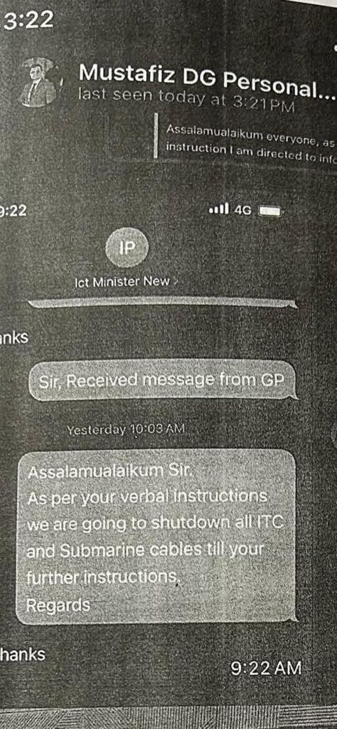 “Assalamualaikum everyone, as per the instruction I am directed to inform you all to shut down the internet from your IIG end completely and send me a SMS ‘done’ after completion. Regards.”