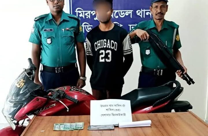 মোটরসাইকেল ও দেশীয় অস্ত্রসহ পেশাদার ছিনতাইকারী শাকিলকে গ্রেফতার করেছে মিরপুর মডেল থানা পুলিশ