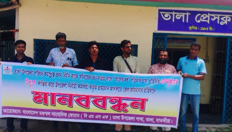 সাংবাদিক রোকনুজ্জামান টিপুকে মারপিঠ অহেতুক জেল জরিমানার প্রতিবাদে তালা প্রেসক্লাবে প্রতিবাদ সমাবেশ ও মানববন্ধন