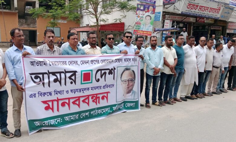 দৈনিক আমার দেশের বিরুদ্ধে মামলা দায়েরের প্রতিবাদে ফরিদপুরে মানববন্ধন