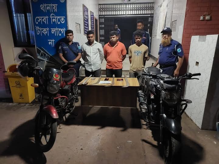 বুধবার (২৯ এপ্রিল) গভীররাতে সেনাবাহিনী ও পুলিশের যৌথ অভিযানে উপজেলার ধুলজুড়ী গ্রাম থেকে তাদেরকে গ্রেফতার করা হয়। এ সময় তাদের কাছ থেকে দেশীয় অস্ত্র, ইয়াবা ও দুটি বিহীন মোটরসাইকেল উদ্ধার করা হয়। গ্রেফতার কৃত হলেন: উপজেলাধীন ধুলজুড়ী গ্রামের মোঃ সইদ শেখ এর ছেলে মো: সোহাগ (২২), নিজাম উদ্দিন এর ছেলে মোঃ বরকত আহমেদ (২৫), জালাল উদ্দিন আহমেদ এর ছেলে মো:শাকিল আহমেদ (৩৮), মো: হাবিবুর রহমান (হবিবার) ছেলে মোঃ জাহিদ শেখ (৪০)।