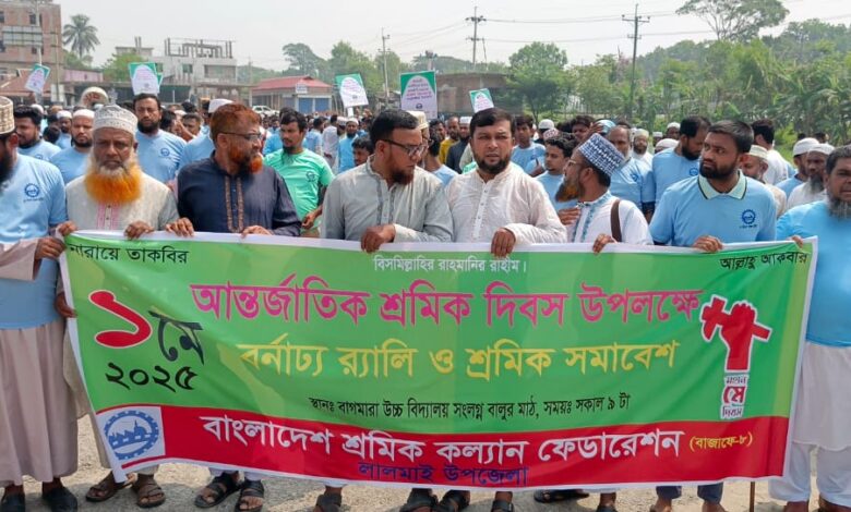 মোস্তফা কামাল মজুমদারঃ লালমাইয়ে আন্তর্জাতিক শ্রমিক দিবস উপলক্ষে বাংলাদেশ জামায়াতে ইসলামীর সহযোগী সংগঠন বাংলাদেশ শ্রমিক কল্যান ফেডারেশন লালমাই উপজেলা শাখার আয়োজনে উপজেলার বাগমারা বাজারে সমাবেশ ও বর্ণাঢ্য র্যালি অনুষ্ঠিত হয়েছে।