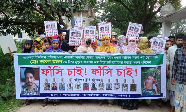 আশুলিয়ায় রুবেলের খুনিদের ফাঁসির দাবিতে এলাকাবাসীর মানববন্ধন