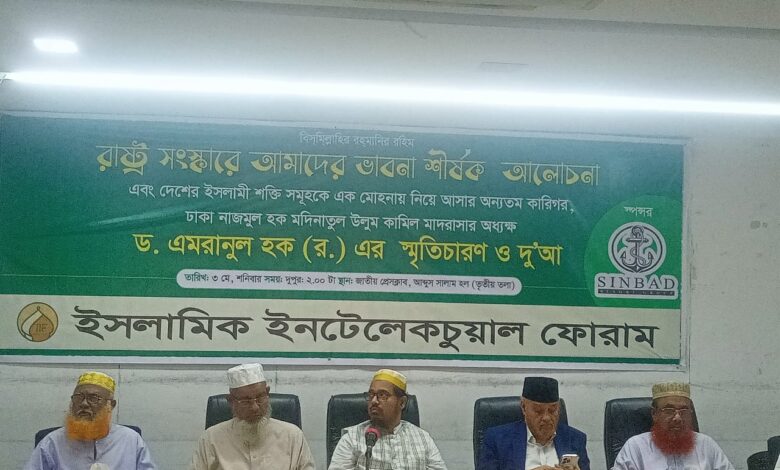 ইসলামিক ইনটেলেকচুয়াল ফোরামের’রাষ্ট্রে সংস্কারে আমাদের ভাবনা’ শীর্ষক আলোচনা সভা অনুষ্ঠিত