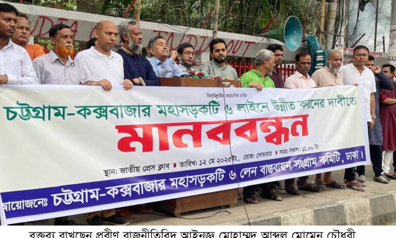 চট্টগ্রাম-কক্সবাজার মহাসড়ক ৬ লেনে উন্নীত করণের দাবিতে মানববন্ধন
