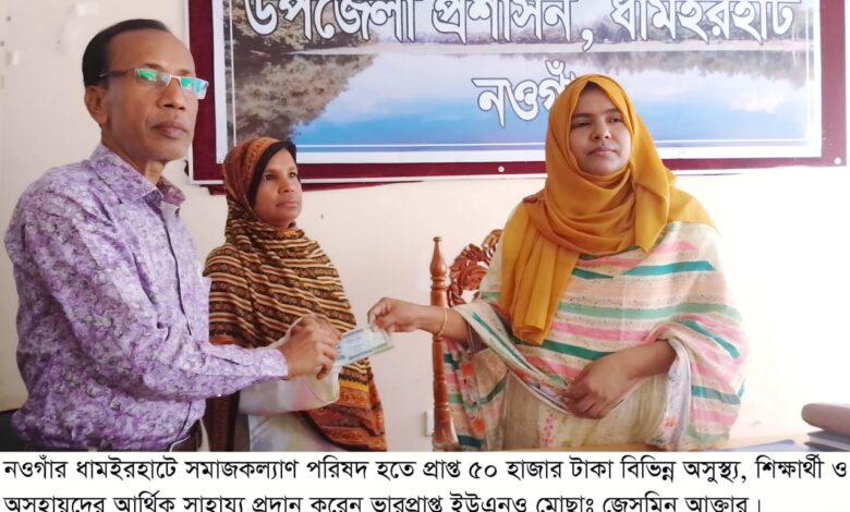 ধামইরহাট উপজেলা সমাজসেবা অফিসের ব্যবস্থাপনায় ২২ মে বিকেল সাড়ে ৪ টায় উপজেলা পরিষদ সভাকক্ষে ৫৩ জন আবেদনকারী অসুস্থ্য ও অসহায়দের মাঝে ৫০ হাজার টাকা বিতরণ করেন ভারপ্রাপ্ত উপজেলা নির্বাহী অফিসার মোছা. জেনমিন আকতার।