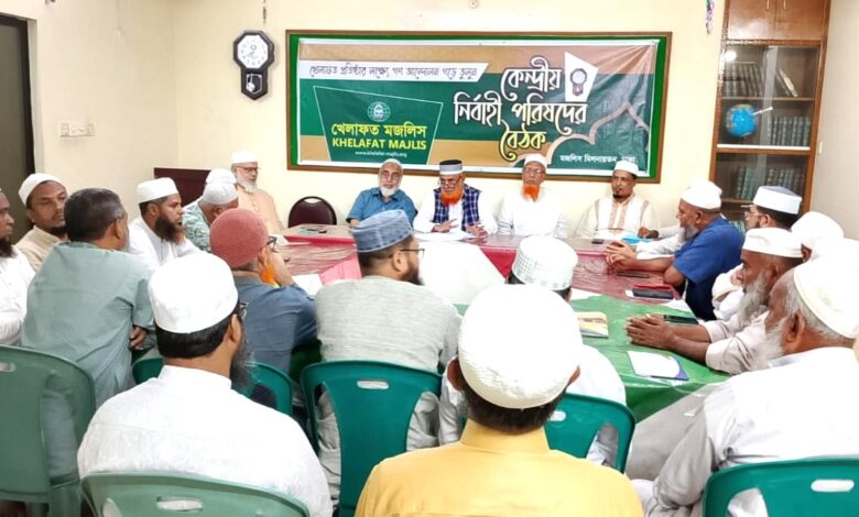 গতকাল সন্ধ্যা ৭ টায় খেলাফত মজলিসের কেন্দ্রীয় কার্যালয়ে অনুষ্ঠিত নির্বাহী বৈঠকের সভাপতিত্ব করেন নায়েবে আমীর মাওলানা আহমদ আলী কাসেমী। মহাসচিব ড. আহমদ আবদুল কাদেরের পরিচালনায় অনুষ্ঠিত উক্ত নির্বাহী বৈঠকে অন্যান্যের মধ্যে উপস্থিত ছিলেন নায়েবে আমীর অধ্যাপক আবদুল্লাহ ফরিদ, যুগ্ম মহাসচিব এডভোকেট জাহাঙ্গীর হোসাইন, মুহাম্মদ মুনতাসির আলী, ড. মোস্তাফিজুর রহমান ফয়সল, অধ্যাপক মো: আবদুল জলিল, সাংগঠনিক সম্পাদক এডভোকেট মিজানুর রহমান, অধ্যাপক কাজী মিনহাজুল আলম, বায়তুলমাল সম্পাদক আলহাজ¦ আবু সালেহীন, সমাজকল্যাণ ও শিল্প বিষয়ক সম্পাদক আমিনুর রহমান ফিরোজ, প্রশিক্ষণ সম্পাদক জহিরুল ইসলাম, প্রচার ও তথ্য সম্পাদক প্রকৌশলী আবদুল হাফিজ খসরু, স্বাস্থ্য বিষয়ক সম্পাদক ডা: রিফাত মালিক, আইন বিষয়ক সম্পাদক এডভোকেট শায়খুল ইসলাম, যুব বিষয়ক সম্পাদক তাওহীদুল ইসলাম তুহিন, ডা. আবদুর রাজ্জাক আসাদ, সাহাব উদ্দিন আহমদ খন্দকার, অধ্যাপক মাওলানা আজিজুল হক, মাওলানা সাইফুদ্দিন আহমদ খন্দকার, আলহাজ¦ নুর হোসেন, মাওলানা ফারুক আহমদ ভূঁইয়া, মো: আবুল হোসেন, মাওলানা আজীজুল হক, আমির আলী হাওলাদার, এডভোকেট মাওলানা রফিকুল ইসলাম প্রমুখ।