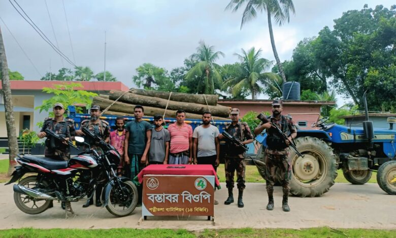 ধামইরহাট সীমান্তে বিপুল পরিমাণ কাঠ ভারতে পাচারকালে আটক