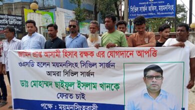 পঞ্চগড়ের তেঁতুলিয়ায় কেশব ট্রেডার্স সার গোডাউনের সামনে কৃষকদের বিক্ষোভ