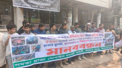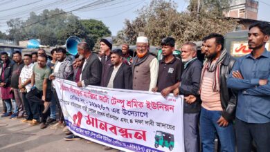 পঞ্চগড়ের তেঁতুলিয়ায় কেশব ট্রেডার্স সার গোডাউনের সামনে কৃষকদের বিক্ষোভ