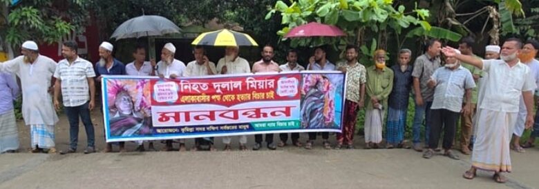 ওয়ার্কশপ মিস্ত্রি হত্যার বিচারের দাবিতে এলাকাবাসীর মানববন্ধন