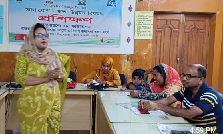 সোমবার (১৮ আগষ্ট) দিনব্যাপী আলো ও বিয়াশ জনসেবা তরুণ সংঘের সহযোগিতায় এবং খান ফাউন্ডেশন এর বাস্তবায়নে  উপজেলা কৃষি হলরুমে এ প্রশিক্ষণ কর্মশালা অনুষ্ঠিত হয়। যোগাযোগ দক্ষতা উন্নয়ন বিষয়ক এ প্রক্ষিণ কর্মশালায় আলোচক হিসাবে বক্তব্য দেন, ভয়েস ফর চেঞ্জ প্রকল্পের জেলা কর্মকর্তা শাহিনা  লাইজু, প্রকল্প কর্মকর্তা সৈয়দা তাহেরা খানম, উপজেলা যুব উন্নয়ন কর্মকর্তা আব্দুল লতিফ মিয়া,