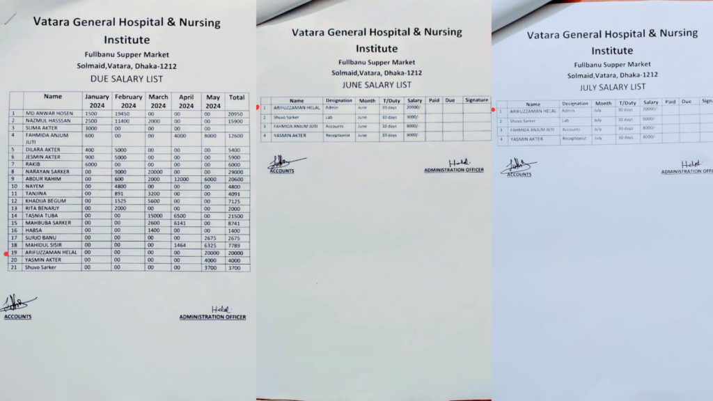 স্টাফ রিপোর্টার: ভবন মালিকদের পক্ষ নিয়ে ঢাকা উত্তর সিটি করপোরেশনের (ডিএনসিসি) তৎকালীন ৪১ নং ওয়ার্ডের আওয়ামী লীগদলীয় কাউন্সিলর নজরুল ইসলাম ঢালীর নির্দেশে ভাটারা জেনারেল হাসপাতালে তালা দেওয়া হয়। এই সুযোগে হাসপাতাল কর্তৃপক্ষ দেড় বছরেও কর্মচারীদের বেতন পরিশোধ করেনি।