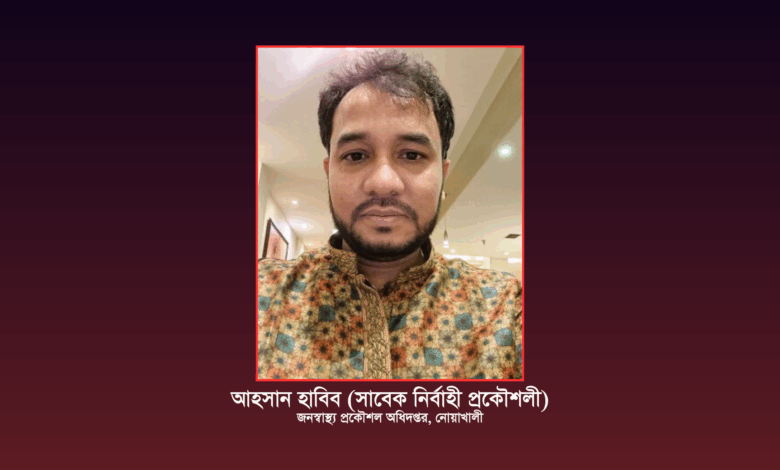 অনুসন্ধান সূত্রে জানা গেছে, আহসান হাবিব গত ২৮/৫/২০২৩ তারিখে নোয়াখালী জনস্বাস্থ্য প্রকৌশল অধিদপ্তরে নির্বাহী প্রকৌশলী হিসেবে যোগদান করেন। তবে ব্যাপক অনিয়ম ও দুর্নীতির কারণে ঠিক এক বছরের মাথায়, গত ২৮/৫/২০২৪ তারিখে তিনি স্ট্যান্ড রিলিজ হয়ে ঠাকুরগাঁও জনস্বাস্থ্য প্রকৌশল অধিদপ্তরে যোগ দেন। বর্তমানে তিনি সেখানেই কর্মরত আছেন। নোয়াখালীতে এই এক বছরের মেয়াদে তিনি অসংখ্য অনিয়ম-দুর্নীতির সাথে জড়িয়ে পড়েন।