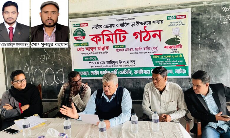 নাটোর প্রতিনিধি: নাটোরের বাগাতিপাড়ায় জাতীয় নাগরিক পার্টির (এনসিপি) আহবায়ক কমিটি গঠন করা হয়েছে। বৃহস্পতিবার (২০ নভেম্বর) বিকেলে বাগাতিপাড়া সরকারি পাইলট মডেল উচ্চ বিদ্যালয় হলরুমে উপজেলা শাখার এ কমিটিতে প্রভাষক আরিফুল ইসলাম তপুকে আহবায়ক ও মুনজুর রহমানকে সদস্য সচিব করে ৫১ সদস্য বিশিষ্ট আহবায়ক কমিটি ঘোষণা করেন এনসিপির নাটোর জেলা কমিটির আহবায়ক মো. আব্দুল মান্নাফ।