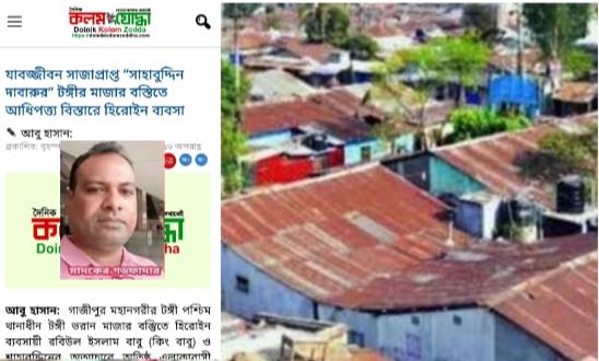 অপরদিকে এই হাজীর মাজার বস্তির শীর্ষ মাদক ব্যবসায়ী রবিউল ইসলাম বাবু (কিং বাবু) একাধিক মাদকদ্রব্যের মামলা মাথায় নিয়ে অবৈধ মাদক ব্যবসার টাকায় নামে বে-নামে গড়ে তুলেছেন একাদিক বাড়ী গাড়ী। স্থানীয় বিভিন্ন সূত্রে ও সরোজমিনে ঘুরে জানা গেছে গাজীপুর মহানগরের টঙ্গী পশ্চিম থানা এলাকার হাজী মাজার বস্তির বাসিন্দা যাবজ্জীবন সাজাপ্রাপ্ত আসামী মাদক সম্রাট মোঃ সাহাবুদ্দিন ওরফে (দাবারু) ও রবিউল ইসলাম বাবু ( কিং বাবু) আওয়ামীলীগ সরকারের পতনের পর বস্তিতে এসে আধিপত্ত্য বিস্তারের মাধ্যমে বস্তির ঘর-বাড়ি দখলের পাশাপাশি বস্তিবাসীর উপর অত্যাচার করাসহ তার মনোনীত মাদক ব্যবসায়ীদের কাছ থেকে বিপুল পরিমান টাকা নিয়ে জমজমাট ভাবে হিরোইন।