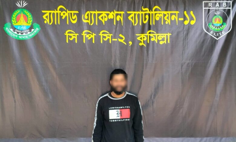 কুমিল্লায় ২ হাজার পিস ইয়াবা সহ সৈকত নামে এক মাদক ব্যবসায়ীকে গ্রেফতার করেছে র্যাব-১১