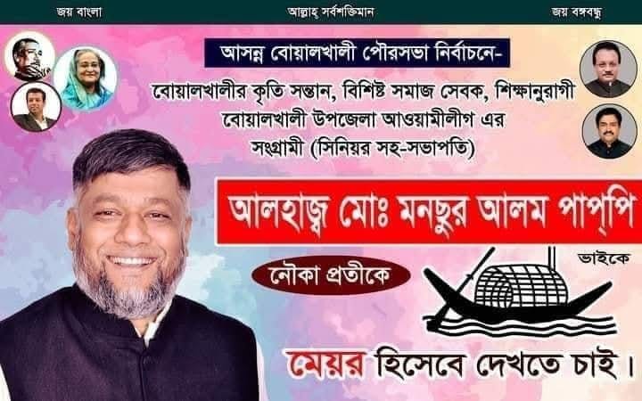 রাজনৈতিক পরিচয়ও বহু ক্ষেত্রে আলোচনার বিষয় হয়েছে। এলাকায় প্রভাবশালী অবস্থানকে শক্তিশালী করতে মনসুর আলম পাপ্পী আওয়ামী লীগের রাজনীতিতে সক্রিয় হন এবং বোয়ালখালী উপজেলা আওয়ামী লীগের সহ সভাপতি পদ পান। পরবর্তীতে পৌরসভা নির্বাচনে মেয়র পদে মনোনয়ন পাওয়ার জন্য প্রচার এবং পোস্টারও দেখা গেছে তখন। স্থানীয়দের অভিযোগ রাজনৈতিক পরিচয় ব্যবহারের কারণেই বহু অভিযোগ সঠিকভাবে তদন্ত হয়নি যদিও এসব অভিযোগের স্বাধীন মূল্যায়ন এখনো হয়নি।