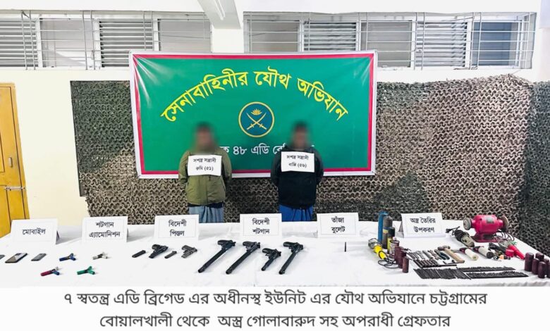 চট্টগ্রামের বোয়ালখালী থেকে ৬টি অস্ত্র ও গোলাবারুদ উদ্ধার যৌথ অভিযানে গ্রেফতার ২ শীর্ষ সন্ত্রাসী