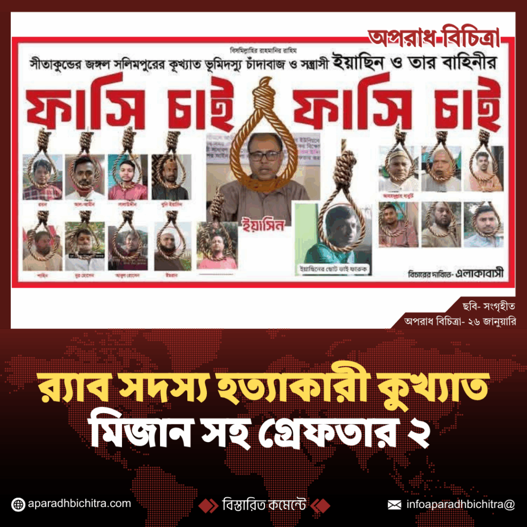 নিজস্ব প্রতিবেদকঃ চট্টগ্রামের বহুল আলোচিত জঙ্গল সলিমপুরে র্যাব সদস্য হত্যা মামলায় এজাহারনামীয় পলাতক আসামি মোঃ মিজান এবং এক সন্দিগ্ধ সহযোগীকে গ্রেফতার করেছে র্যাব ৭ চট্টগ্রাম।গত ১৯ জানুয়ারি ২০২৬ ইং তারিখে সন্ত্রাস দমন ও অস্ত্রধারী অপরাধীদের গ্রেফতারের উদ্দেশ্যে চট্টগ্রামের সীতাকুন্ড উপজেলার জঙ্গল সলিমপুর এলাকায় অভিযান পরিচালনা করে র্যাব।