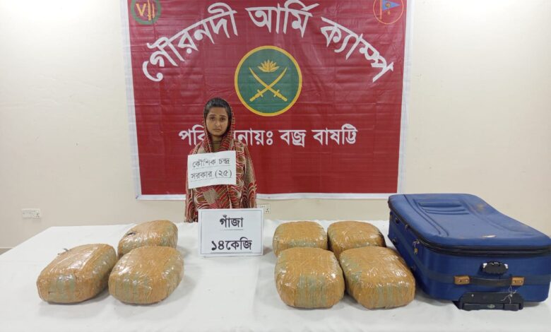 গৌরনদীতে ১৪ কেজি গাঁজাসহ তৃতীয় লিঙ্গের মাদক কারবারি আটক: সেনাবাহিনীর অভিযান