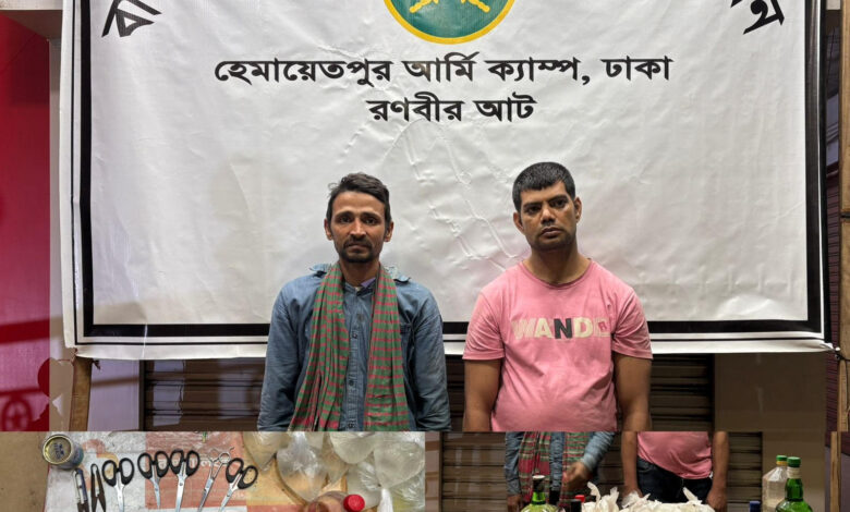 সোমবার (০২ ফেব্রুয়ারি ২০২৬) গভীর রাত আনুমানিক ১২টা ৩০ মিনিটে হেমায়েতপুর বাসস্ট্যান্ড এলাকায় হেমায়েতপুর সেনা ক্যাম্পের একটি টহল দল অভিযান চালিয়ে গুটি ফিরোজসহ দুইজনকে আটক করে।