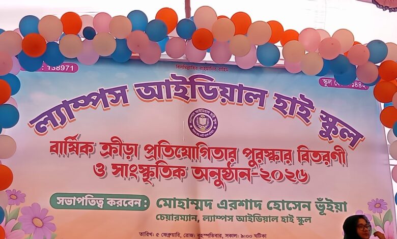 নিজস্ব প্রতিবেদক: উৎসবমুখর পরিবেশে অনুষ্ঠিত হলো ল্যামপস আইডিয়াল হাই স্কুলের ২০২৬ সালের বার্ষিক ক্রীড়া প্রতিযোগিতা, পুরস্কার বিতরণী ও মনোজ্ঞ সাংস্কৃতিক অনুষ্ঠান। জাঁকজমকপূর্ণ এই আয়োজনে শিক্ষার্থীদের স্বতঃস্ফূর্ত অংশগ্রহণ ছিল চোখে পড়ার মতো।
