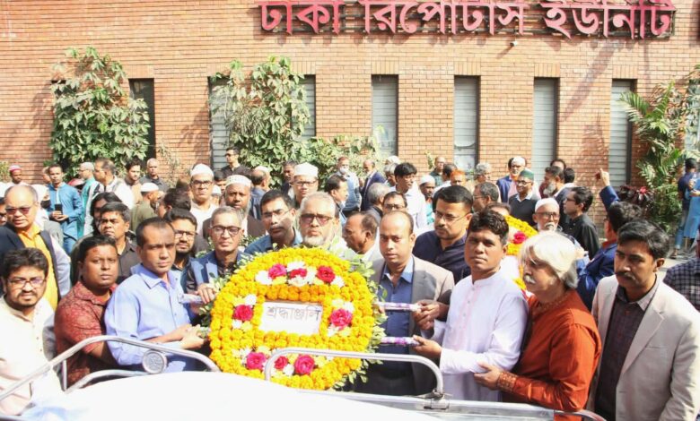 এ সময় আরও উপস্থিত ছিলেন বাংলাদেশ ফেডারেল সাংবাদিক ইউনিয়নের (বিএফইউজে) একাংশের সভাপতি ওমর ফারুক, ডিআরইউর সাবেক সভাপতি সাইফুল ইসলাম, সাধারণ সম্পাদক কবির আহমেদ খান ও ইকোনোমিক রিপোর্টার্স ফোরামের সাধারণ সম্পাদক আবুল কাশেম প্রমুখ।
