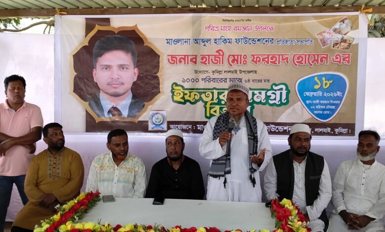 কুমিল্লার লালমাই উপজেলায় আত্মমানবতার সেবায় নিবেদিত ‘মাওলানা আব্দুল হাকিম ফাউন্ডেশন’-এর উদ্যোগে পবিত্র রমজান উপলক্ষে ১ হাজার অসহায় ও দুস্থ পরিবারের মাঝে ইফতার সামগ্রী বিতরণ করা হয়েছে।
