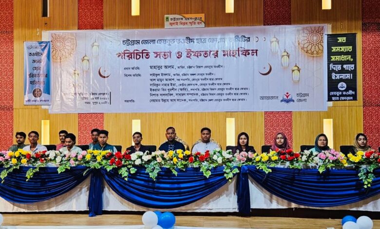 চট্টগ্রামে হেযবুত তওহীদ ছাত্র ফোরাম এর উদ্যোগে পরিচিতি সভা ও ইফতার মাহফিল অনুষ্ঠিত হয়েছে। বুধবার (৪ মার্চ) দুপুরে চট্টগ্রাম প্রেসক্লাব এর জুলাই স্মৃতি হলে এই আয়োজন করা হয়।