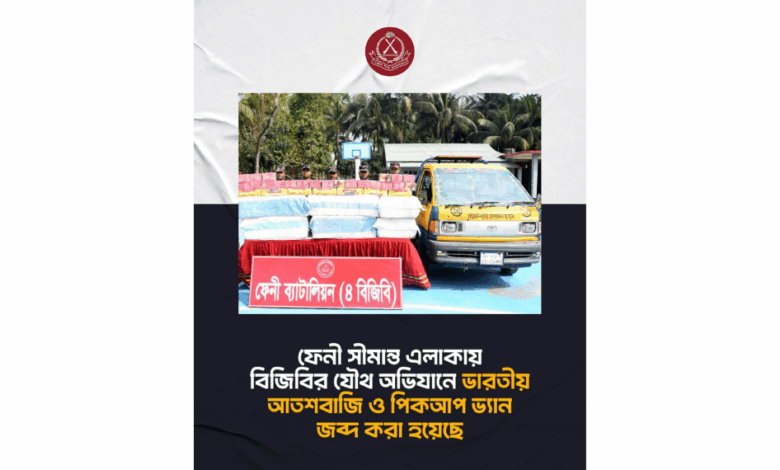 সোমবার (৯ মার্চ) ভোর থেকে সকাল ৯টা পর্যন্ত বিজিবি, নির্বাহী ম্যাজিস্ট্রেট, পুলিশ ও আনসার সদস্যদের সমন্বয়ে এই সফল অভিযান পরিচালিত হয়। অভিযানে ২২,৮৫৬ পিস ভারতীয় আতশবাজি এবং এসব মালামাল পরিবহনে ব্যবহৃত পিকআপ জব্দ করা হয়, যার আনুমানিক বাজারমূল্য প্রায় ১৭ লক্ষ ৮৪ হাজার ৫৬০ টাকা। উদ্ধারকৃত মালামাল ও পিকআপসহ চালককে আটক করা হয়েছে, আর দোকানের মালিককে পলাতক আসামি করে প্রয়োজনীয় নথিপত্রসহ ফেনী সদর মডেল থানায় হস্তান্তর করা হয়েছে।