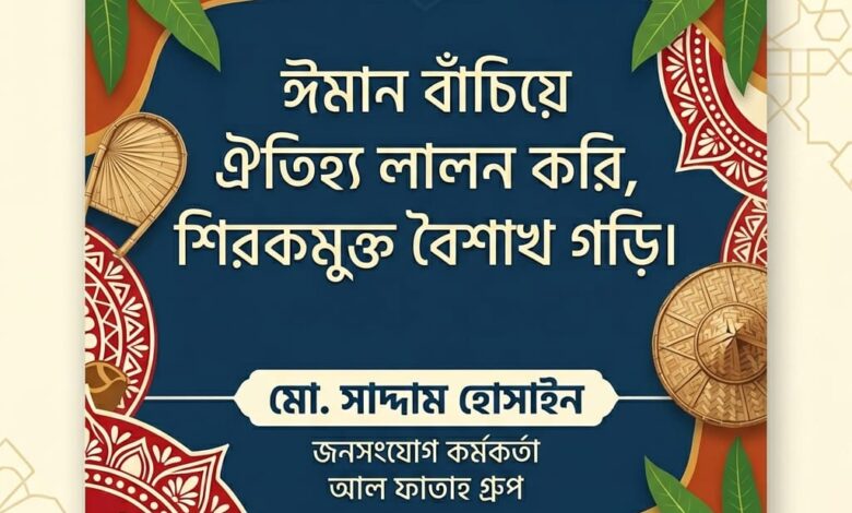 ​আসুন, আমরা আমাদের ঐতিহ্যকে লালন করি ইসলামের সীমানার ভেতরে থেকে। শিরক মুক্ত সমাজ গড়ি এবং পারস্পরিক ভালোবাসায় ভ্রাতৃত্বের বন্ধন মজবুত করি।