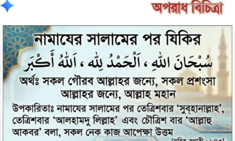 Home/Uncategorized/নামাযের সালামের পর যিকির,سُــبْحَانَ الـلّٰه ، ٱلۡحَمۡدُ لِلَّه ، اَلـلّٰهُ اَ كْــبَر Uncategorizedইসলাম ধর্ম নামাযের সালামের পর যিকির,سُــبْحَانَ الـلّٰه ، ٱلۡحَمۡدُ لِلَّه ، اَلـلّٰهُ اَ كْــبَر 3 hours ago0 13 Less than a minute Facebook X LinkedIn Tumblr Pinterest Reddit VKontakte Odnoklassniki Pocket 3 hours ago0 13 Less than a minute Facebook X LinkedIn Tumblr Pinterest Reddit VKontakte Odnoklassniki Pocket Share Facebook X LinkedIn Tumblr Pinterest Reddit VKontakte Odnoklassniki Pocket Share via Email Print