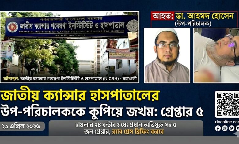 অপরাধ বিচিত্রা ডেক্স: রাজধানীর মহাখালীতে জাতীয় ক্যানসার গবেষণা ইনস্টিটিউট ও হাসপাতালের উপপরিচালক ডা. আহমদ হোসেনকে (৫০) ছুরিকাঘাতে জখম করার অভিযোগে পাঁচজনকে গ্রেপ্তার করেছে র্যাব।