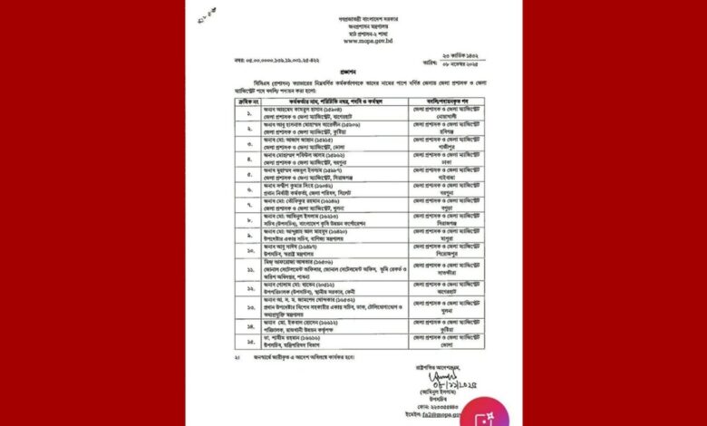 Read More »নিউজ ডেস্ক : ১৫ জেলায় নতুন জেলা প্রশাসক (ডিসি) নিয়োগ দিয়েছে অন্তর্বর্তীকালীন সরকার। শনিবার (৮ নভেম্বর) মধ্যরাতে জনপ্রশাসন মন্ত্রণালয় থেকে…