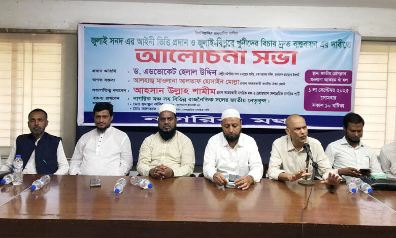 সুমন মিয়া: আজ ১ সেপ্টেম্বর, ২০২৫ তারিখে নাগরিক মঞ্চ কর্তৃক আয়োজিত ‘জুলাই সনদের আইনি ভিত্তি ও খুনিদের বিচারের দাবিতে’ জাতীয়…