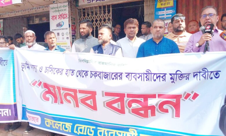 Read More »নিজস্ব প্রতিবেদক: চট্টগ্রামের শিক্ষাকেন্দ্রিক অঞ্চল চকবাজারের কলেজ রোড ও লালচাঁন্দ রোড—দুই সড়ককে ঘিরে দীর্ঘদিনের অনিশ্চয়তা ও হয়রানির প্রতিবাদে মানববন্ধন করেছেন…