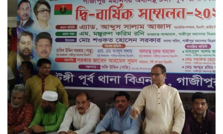 Read More »বিথীকা, টঙ্গী প্রতিনিধি : গাজীপুরের টঙ্গী পূর্ব থানা বিএনপির দ্বি-বার্ষিক সম্মেলন অনুষ্ঠিত হয়েছে। বৃহস্পতিবার দুপুরে টঙ্গী বাজারের এলাকায় একটি কমিউনিটি…
