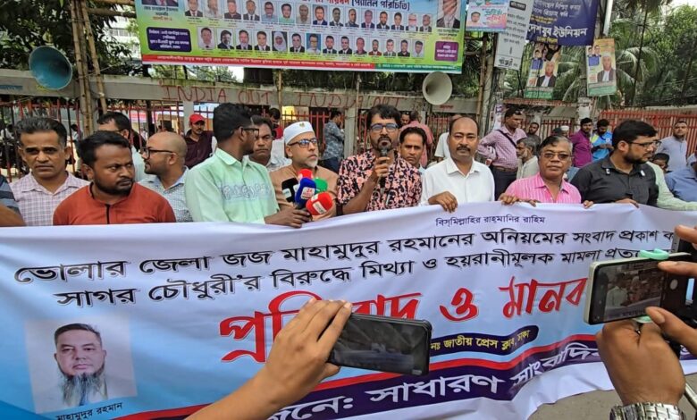 Read More »নিজস্ব প্রতিনিধি: ভোলার জেলা জজ এ এইচ এম মাহমদুর রহমানের দুর্নীতির খবর প্রকাশের জেরে সাংবাদিক সাগর চৌধুরীর বিরুদ্ধে দায়েরকৃত মিথ্যা…